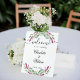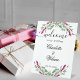 Un arrière - plan blanc chic. Décoré de fleurs de lavande rose, de fleurs et de verdure d'eucalyptus. Lettres violettes et noires. Personnalisez et ajoutez vos noms et la date du mariage.