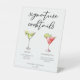 Cette enseigne élégante à cocktails pedestal propose une typographie noire simple au-dessus de 2 boissons et leurs ingrédients pour votre bar mariage. Un joli Martini et un dessin cosmopolite ajoutent une touche cool à votre menu du bar. Complétez avec les noms du couple et la date de leur réception.