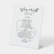 Menu du mariage Tabletop se connecter en noir et blanc avec deux coeurs arrière - plan. Ce design correspond à notre collection rustique d'écorce de bouleau. Customisez le texte noir avec les noms de la mariée et du marié en haut. Le lieu et la date de l'événement sont suivis du titre "menu". Tous les entrées, entrées et autres choix de menu sont listés dans un paragraphe. Ajoutez des espaces si nécessaire. Ce panneau blanc, debout, vient en plus grandes tailles.