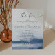 Cette mariage moderne aquarelle bleue le panneau de guéridon du menu du bar est parfait pour un mariage contemporain élégant. La collection design minimaliste, classique et élégante présente de simples touches de peinture couleur à l'eau dans de jolis tons bijoux.