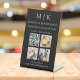 Plaque à plateau d'affaires minimaliste moderne avec 3 photos. Noir & Blanc ou choisissez vos couleurs personnalisées. Ajoutez votre site Web ou votre adresse Web de médias sociaux au QR Scan Code. Autoriser les clients à utiliser l'analyse pour accéder aux informations sur vos éléments tels que les produits ou les éléments de menu. Idéal pour les commerces de détail, les petites entreprises, les petits kiosques, les salons de foires et d'événements, l'hospitalité, les salons, les spas, les boulangeries, les cafés, les restaurants, les bars et plus encore. Facile à personnaliser avec vos initiales monogrammes, nom d'entreprise et informations, photos, slogan ou même ajouter votre logo ou votre marque personnelle.