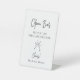 Personnalisez ce panneau de table mariage pour faire savoir aux clients qu'il y a un bar ouvert tant qu'ils sont sur la piste de danse ! La simple enseigne blanche en texte noir ne manquera pas d'agrémenter le décor de la réception.