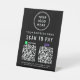 Panneau de piédestal noir moderne pour votre entreprise avec CashApp et Zelle QR codes pour les clients à scanner pour les paiements. Téléchargez votre logo et vos codes QR et ajoutez votre nom d'entreprise, votre numéro de téléphone et votre adresse de rue dans une simple typographie blanche.