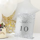 Avant : Un faux arrière - plan argenté décoré de confettis. Personnalisez et ajoutez vos numéros de table. Ajoutez vos numéros un par un.