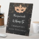 Un signe de bienvenue pour une fête d'anniversaire girly et glamour de 50t (ou n'importe quel âge). Un arrière - plan noir élégant. Décoré avec des étincelles de parties scintillant en faux or et un masque masqué. Personnalisez et ajoutez un nom. Retour : aucune conception