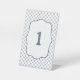 Remplissez votre papier à lettre d'invitation à thème de pêche avec la journée de signalisation correspondante. Placez ces panneaux de numéro de table debout sur vos tables de réception pour que les clients puissent trouver leur place. Le design présente le motif de filet de poisson assorti en acier bleu.