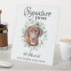 Signature Boissons de vos animaux de compagnie! Inclure votre meilleur chien, meilleur chat et tout animal de compagnie dans votre mariage avec son bar à boissons signature pour vos invités. Parfait pour les amoureux de les chiens, et un bar spécial chien sera un succès à votre mariage. Blanc moderne et simple avec des feuilles eucalyptus. Customisez ce signe mariage animal de compagnie avec votre chien, chat, chiot ou chaton photo préférée, nom et signature boisson!. DROIT D'AUTEUR © 2020 Judy Burrows, Black Dog Art - Tous droits réservés. Pet Mariage Chien Bar Signature Boissons Photo Piédestal Signal