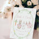 A Charming Delivery from Mr. McGregor's Garden! This Books and Cards Pedestal sign features a custom hand-painted frame of a crisp pink ribbon pattern accented with a lush light green ribbon wreath, creating a clean, classic, and welcoming look. A sweet watercolor clothesline is strung across the center, proudly displaying tiny, adorable items, each subtly featuring a pink clothed bunny in a Peter Rabbit style. The scene is completed with cute fresh carrots, and bright, cheerful daffodils, all rendered in a soft watercolor style. Easily add your own details and change the font style, size color and placement if you would like to.