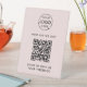 Un simple modèle de retour d'affaires rose vif personnalisé dans un style minimaliste moderne qui peut être facilement mis à jour avec le logo de votre entreprise, le code QR et le texte personnalisé.