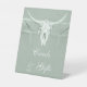 Signe De Table Russe Western Pastel Sage Vert Vache blanche Crâne