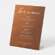 Suivez la tendance d'automne des tons terreux avec notre menu de bar mariage de automne dégradé d'orange brûlé à marron. Une simple typographie blanche sur un arrière - plan rustique pour un look minimaliste. Les teintes bohémiennes évoquant l'argile de terre cuite mettent en valeur votre élégante calligraphie sur ce panneau de soie.