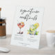 Cette enseigne élégante à cocktails de menu à guéridon est dotée d'une typographie noire personnalisée au-dessus de 2 boissons et de leurs ingrédients pour votre bar mariage. Une jolie Sangria d'été dans un verre à vin et un dessin de Mojito ajoutent une touche cool à votre menu du bar. Complétez avec les noms du couple et la date de leur réception.