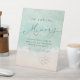 Beau turquoise abstraite aquarelle scintillante vague d'océan et les coeurs dans l'arrière - plan de plage de sable, surmonté d'un script élégant et d'élégante police serif, moderne et simple. Grand signe de mémoire d'amour pour la douche nuptiale nautique, mariage de plage, anniversaire, fête de remise de diplômes, fête de retraite, funérailles, etc. Mariage moderne Script Beach Hearts