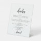 Ce panneau rustique du mariage de boissons est parfait pour un mariage campagnard. Le design simple et moderne en noir et blanc présente une calligraphie manuscrite unique et fantaisiste, avec un style boho minimaliste contemporain. Personnalisable dans n'importe quelle couleur. Gardez le design minimal et simpliste, en l'état, ou personnalisez-le en ajoutant vos propres graphiques et artwork.