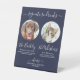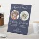 Boissons Signature ! Calligraphie simple mais élégante, cette enseigne signature bar à boissons propose deux cocktails "the Bride" et "the Groom", personnalisés avec vos boissons de choix. Customisez ce panneau de mariage élégant avec votre photo d'animal de compagnie préférée, photo de chien, photo de fiançailles ou photos de couple, noms et boissons signature! Vous pouvez également customiser les photos pour des boissons signées de vos animaux de compagnie préférés pour un mariage d'animaux ! Personnalisez avec des photos de chiens ou de chats. DROIT D'AUTEUR © 2020 Judy Burrows, Black Dog Art - Tous droits réservés. Signature Boissons Animaux de compagnie Chien Mariage Photo Marine Blue Pedestal Signal