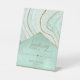 Vous obtenez à la fois le glamour et l'impact élevé avec cet ensemble de mariage de coordination qui comprend des motifs d'agate abstraits, texturés avec des faux cristaux et des reflets dans un film d'or scintillant. Des combinaisons de couleurs éclatantes, comme cette suite avec sa palette pastel douce du vert menthe au bleu turquoise, créent l'arrière - plan pour les pièces de cet ensemble coordonné. Cette enseigne "Sanitizing Station" présente toutes les calligraphies ci-dessus ainsi qu'une calligraphie élégante et un modèle pour ajouter facilement vos noms, message et date de mariage. Affichez le lien de collection sur cette page pour voir tous les éléments correspondants dans cette belle conception ou recherchez ID827 pour voir des choix de couleurs supplémentaires.