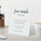 Simple, stylish wedding face mask station pedestal sign in a minimalist design style with an elegant natural script typographiy in classic black and white, with informal handwriting style font. The text can easily be personalized for a unique of a kind design to keep guests safe during your special day.