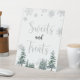 Douceurs et gâteries signe. Baby shower d'hiver en argent, douches nuptiales avec pins et flocons de neige. Thème hivernal idéal pour le baby shower hivernal et la douche nuptiale hivernale, ainsi que pour les thèmes hivernaux mariages.