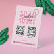 Signe à la mode et chic business Scan to Pay avec espace pour 2 codes QR et votre nom d'entreprise et vos coordonnées. Ce panneau de paiement pour l'entreprise propose des polices rétro en rose et en script tendance pour votre nom d'entreprise, ou vous pouvez même ajouter votre logo. Ce panneau supérieur à deux codes QR permettra à vos clients de faire un paiement directement à partir de leur téléphone ou tablette, parfait à utiliser à votre caisse, à votre marché artisanal ou à afficher dans votre magasin.