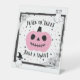 Trick ou régaler prenez un sucré. Un joli citrouille rose jack-o-lanterne éffrayant est entouré de minuscules étoiles roses et noires et se trouve à l'intérieur d'une toile d'araignée éffrayante cadre noir. Un mignon fantôme de chat kitty et un petit fantôme de sorcière regardent tous les petits trucs ou traiteur profiter de bonbons. Un joli et éffrayant Trick ou Treat and Happy Halloween signe pour quand vous ne pouvez pas être là pour distribuer des gâteries sur la nuit la plus effrayante de l'année.
