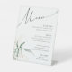 Entrez dans un monde enchanteur avec notre verdure fantaisiste et notre or | mariage menu guéridon panneau, parfait pour votre mariage botanique de printemps botanique. Orné d'eucalyptus vert sauge et d'accents dorés, ce guéridon de menu exhale élégance et fantaisie moderne. Imaginez vous promener dans un jardin d'été magique, entouré par les sons apaisants de la nature. Le design saisit sans effort le charme rustique de l'automne avec ses teintes vert clair, évoquant la beauté de la saison changeante. Avec une touche de sophistication minimaliste et une touche bohème classique, les détails chatoyants de la feuille d'or ajoutent une touche de glamour et de romance. Avec une atmosphère de conte de fées gracieuse, ce guéridon de menu exsude la classe et met en valeur la splendeur naturelle de l'automne. N'hésitez pas à nous contacter pour toute question sur le design, et laissez-nous vous aider à faire le mariage de vos rêves.