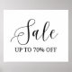 Noir et blanc Jusqu'à 70% Offre de vente signe, avec une calligraphie moderne sophistiquée. Parfait pour les boutiques ou les magasins de détail qui font la promotion de leurs ventes saisonnières ou des évènements de dégagement.