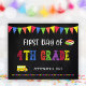 Signe du premier jour de l'école | Poster de 4e année—Lancez l'année scolaire de votre enfant avec un panneau de tableau de bord festif et coloré du premier jour de l'école! Quelle façon amusante et mémorable de se souvenir du premier jour d'école de votre enfant. Customisez la date de votre premier jour d'école et préparez-vous pour toutes ces photos !