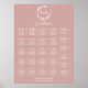 Un simple panneau de siège mariage rose monogramme en faux feutre floral chic. Facile à personnaliser avec vos détails. Carte de sièges boho moderne signe modifiable, personnalisable, calligraphie police manuscrite, simple, élégant.