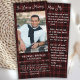 Cartes de prières funéraires en marbre bleu Premium Sympathy. Cette simple carte de prière commémorative présente un design élégant en automne rouge bordeaux. Avant "In Loving Memory" Personnalisez cette carte de prière funéraire commémorative avec vos proches photo, nom & dates, et sentiment. Retour ~ Poème 'Miss Me', qui peut être personnalisé, s'il vous plaît tendre la main si vous voulez un design avec un poème spécifique autre que. Cette carte de prière commémorative plastifiée sera un souvenir précieux, pour les services funéraires et la célébration de la vie. DROIT D'AUTEUR © 2020 Judy Burrows, Black Dog Art - Tous droits réservés. Signet de prière funéraire Carte Plaid Photo Memorial