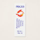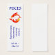 Un signet spécial pour un Piscéen, avec deux brillants poissons orange et rouge d'une aquarelle de Judy Adamson. En haut, en lettres bleues est le mot "PISCES" et en dessous, les quatre principaux traits positifs de ceux nés sous ce signe et les dates : 19 févr - 20 mars. Cartes de voeux et autres cadeaux également disponibles avec ce design.
