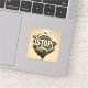 Dieser Aufkleber hat ein Stoppschild darauf.