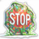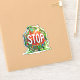 Dieser Aufkleber hat ein Stoppschild darauf.