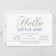 Feiern Sie einen besonderen Tag für Ihren Liebsten mit dieser modernen Baby Dusche Einladung! Dieses Design bietet stilvolle Typografie " Hello Little Man" in Glitzer silberne Textur & Softblue.