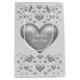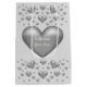 Desteis silbergraue Farbherzen in verschiedenen Größen auf einem hellgrauen Hintergrund. Es gibt auch einen personalisierbaren Textbereich über dem großen Herzen in der Mitte.