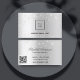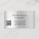Ein elegantes Imitat silber metallisch aussehender Hintergrund mit Imitaten Glitzer Staub. Personalisieren Sie Ihr Firmenlogo und Text auf der Vorderseite und fügen Sie es hinzu. Zurück: Vorlagen für Ihren Namen, Titel, Telefonnummer, E-Mail und Website-Adresse, QR-Code. Ideal für Unternehmerinnen, Berater, Geschäftsinhaber.