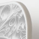 Eine Kollektion von aufwändig gestaltetem Silberpapier, das dunkle Blume und wirbelnde Motive auf weißem Hintergrund erstickt.
