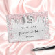 Modern, stilvoll und glamourös für die Quinceañera eines Mädchens, 15. Geburtstagsfeier. Ein Imitat silber aussehender Hintergrund, dekoriert mit rosa und Imitaten silberne Glitzer Staub. Personalisieren, Name und Datum. Nummer 15 wird mit einem Schriftart im Ballonstil geschrieben, Skript.