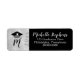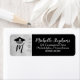 Elegantes Design der Abstufungsanzeige mit einem Graduierungshülse mit Initial und Jahr auf gedruckten silberfarbenen Imitaten Glitzer Hintergrund auf verlassen und hellsilbergrauen Namen und Rücksendeadresse auf einem schwarzen Hintergrund auf der rechten Seite. Ideal für Ihre feierlichen Mailings. Design by Holiday Hearts Designs (Rechte vorbehalten).