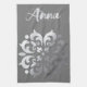 Name Monogramm in grauem und ruhigem Silber-Design für eine störungsfreie Umgebung.