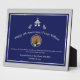 Die Silver Blue Church Pastor Jubiläumsfeier Tabletop Plaque mit Easel ist ein atemberaubendes Stück, das zum Feiern der Meilensteine und Jahrestage von Kirchenführern entworfen wurde. Das schöne silber-blaue Farbschema erinnert an ein Gefühl von Ruhe und Ehrfurcht, ideal für einen Pastor's Jubiläum. Das Design dieser Plakette verbindet elegant Silber, das Ehre und Unterscheidung widerspiegelt, mit beruhigenden Blautönen, die Tiefe und Stabilität symbolisieren. Das Gesamtbild ist sowohl inspirierend als auch ruhig, passend für den würdigen Anlass, den es feiert. Subtile Dekorationselemente wie geprägte Ränder oder eingravierte Muster, zu denen Kreuze oder Wellen gehören können, fügen der Tafel eine raffinierte Touch hinzu, die sie optisch ansprechend macht. Die aus hochwertigen Materialien gefertigte Tafel-Tischplatte der Silberblauen Pfarrkirche ist haltbar und von Dauer, sodass sie für viele Jahre gepflegt werden kann. Es ist eine ideale Wahl, um Dankbarkeit und Anerkennung während Kirchenfeiern, Pastoralfeiern oder als persönliches Geschenk der Gemeinde zum Ausdruck zu bringen. Klicken Sie auf "Personalisieren", um die Details anzupassen und zu ändern. Folgen Sie Shakti Studio auf Zazzle und Interesse für weitere Designs!