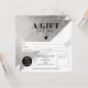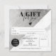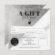 Modernes elegantes Schwarz-Weiß-Marmor-Muster und silberne Folie Block einfache quadratische Geschenkgutschein, fügen Sie Ihr Logo, mit einem goldenen Herz. Perfekter Geburtstag- oder Weihnachtsgutschein.