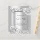 Imitate silber aussehender Hintergrund mit Blumen, Blume und Imitaten silberne Glitzer, Glitzern. Personalisieren Sie Ihre Party-Daten und fügen Sie sie hinzu. Schwarze Buchstaben. 1 Blatt = 1 Einladung mit Druckkante bis Kante.