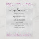 Ein modernes, elegantes Hochzeitsprogramm, Zeitleiste. Imitate silber aussehender Hintergrund mit fuchsienfarbenen, rosa kleinen Herzen dekoriert. Personalisieren und fügen Sie Ihre Namen und Hochzeitsdetails. Schwarze Buchstaben.
