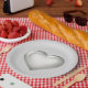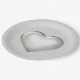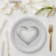 Diese Papierplatte weist ein formschönes silbernes Herz mit einem gläsernen Aussehen auf. Ideal für Verlobungsfeiern oder zum Silber-Jubiläum.