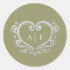 Silberherz-Monogramm Farn-grüne Hochzeit Runder Aufkleber