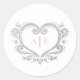 Silberherz-Monogramm rosa Text auf weißer Hochzeit Runder Aufkleber