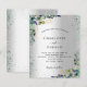 Imitat silber aussehender Hintergrund mit Eukalyptusgrün, goldgelbem Blattwerk und Glitzer mit silber und grünen Imitaten, Glitzern. Personalisieren und fügen Sie Ihre Namen und Hochzeitsdetails. Schwarze Buchstaben.