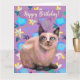 Malerei einer silbergrauen Katze, Blume im Hintergrund. Für alle Katzenliebhaber, viel Glück zum Geburtstag!