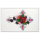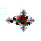 Silberkreuz mit einer rote Rose und schwarze Blätter auf weißem Hintergrund.