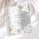 Für eine elegante und romantische Hochzeit. Ein silbernes Imitat mit weißen Blumen, Rose und weißen Spitzen. Personalisieren Sie Ihre Namen und Details und fügen Sie diese hinzu. 1 Blatt = 1 Einladung mit Druckkante bis Kante.